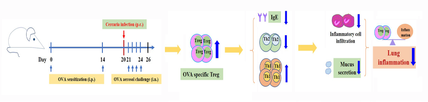 图1.肺期血吸虫感染调控过敏性气道炎症的潜在机制